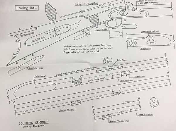 This full size drawing of an Ambrose Lawing rifle. Lawing (1826-1872)