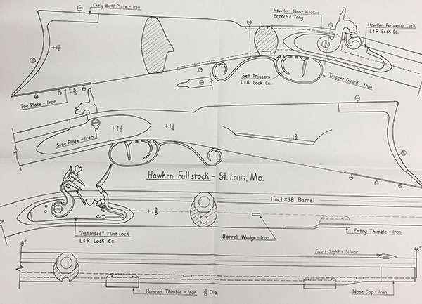 A full-scale drawing of a Bean rifle, reportedly restocked by Hacker Martin in the 1940’s with wood ...
